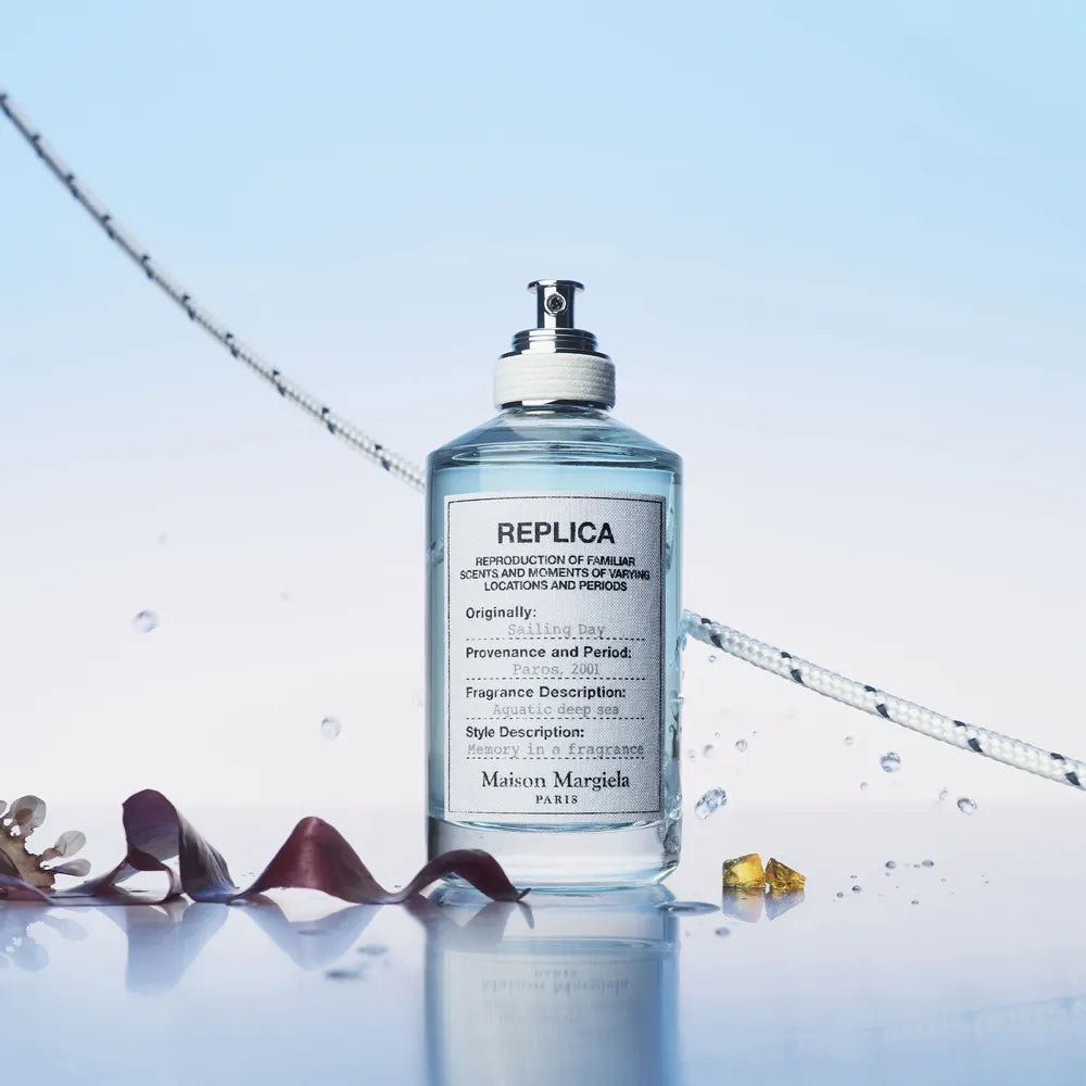 La linea Replica di Maison Margiela si propone di “riprodurre emozioni, luoghi e momenti familiari” attraverso profumi che evocano memorie olfattive. Sailing Day è il capitolo dedicato al mare, alla luce e al respiro acquatico.