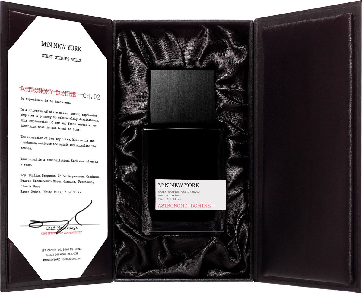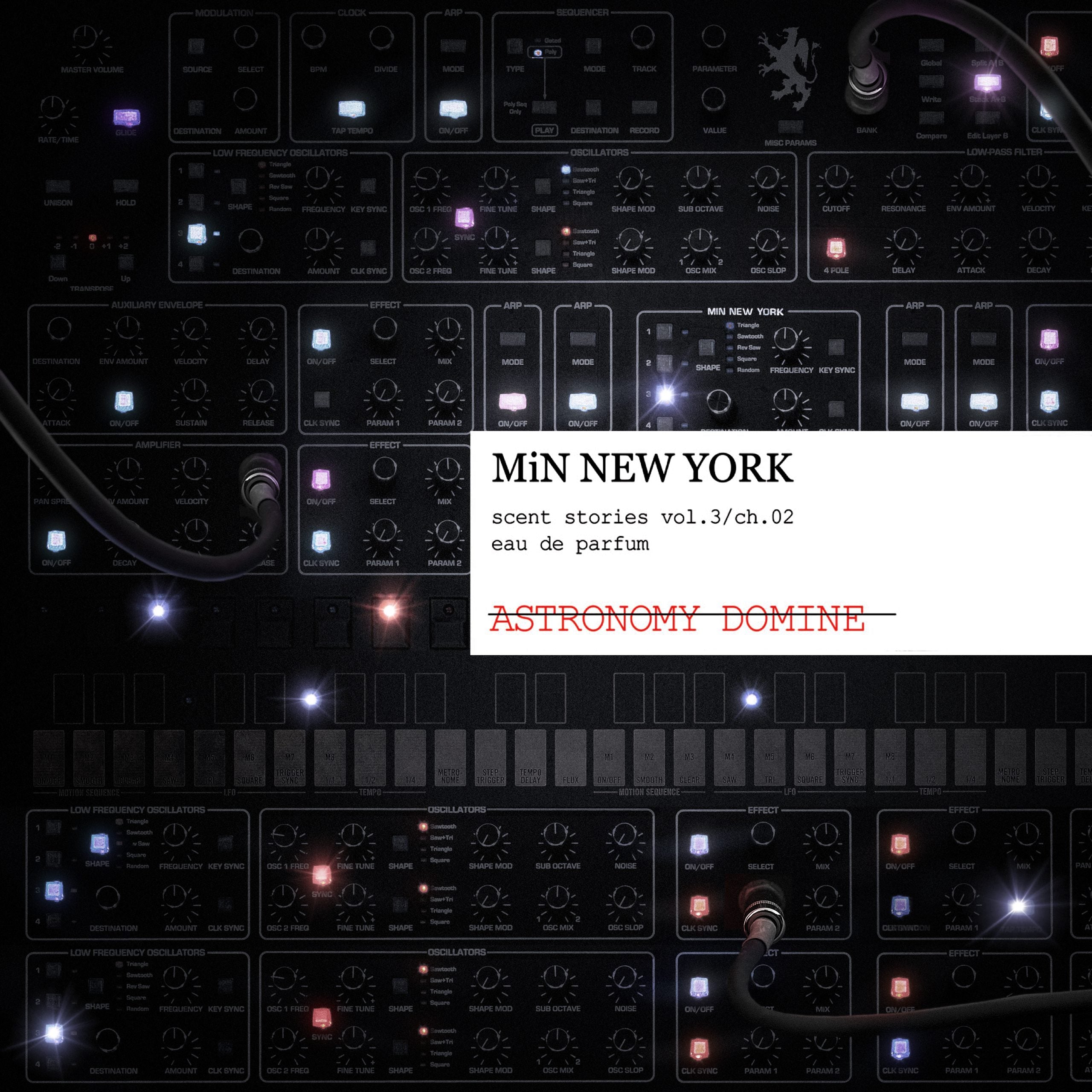 Lanciata nel 2019, Astronomy Domine fa parte del volume 3 della collezione Scent Stories di MiN New York. Il nome richiama il celebre brano dei Pink Floyd, evocando un’atmosfera di esplorazione mentale e spaziale. La fragranza è una metafora olfattiva del viaggio interstellare: un racconto sensoriale sospeso tra la materia e l’etereo, tra il noto e l’infinito.