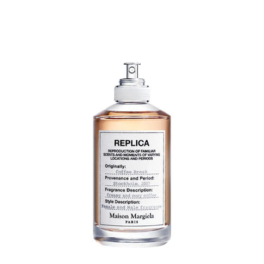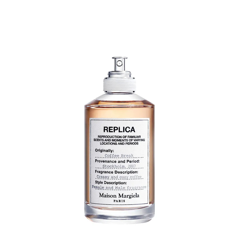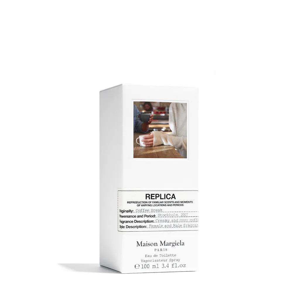 Coffee Break è nata nel 2019 come parte della collezione Replica di Maison Margiela, che trae ispirazione dai ricordi più intimi e quotidiani. Questa fragranza in particolare mira a catturare il momento “pausa caffè” in un bar accogliente: l’aroma del caffè appena tostato si mescola con la cremosità della mousse di latte e il suono sommesso della macchina del caffè.